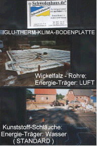 Regel nur wenige Stunden. Die hier abgebildeten Fotos zeigen das System mit Wickelfalzrohrer, in denen als Energieträger Luft zum Einsatz kommt. Dieses System ist um ca. 250 – 300 % teurer als das oben Beschriebene auf Warm-Wasser-Basis. Diese KLIMA-Bodenplatte ist für alle Fußbodenbeläge wie Fliesen, Teppichböden und Laminate geeignet. Sie müssen lediglich das entsprechen Symbol „ Für Fußbodenheizung geeignet “ tragen. (Quellen: Helisol/ Schwedenhaus.de )
